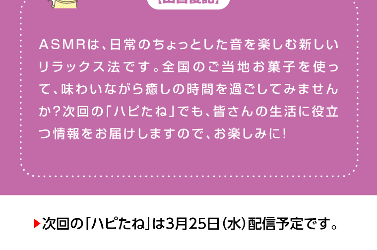 - ちょっと素敵な生活情報 ◎ハピたねvol.157 ◎ASMR好き必見!「全国のご当地お菓子」